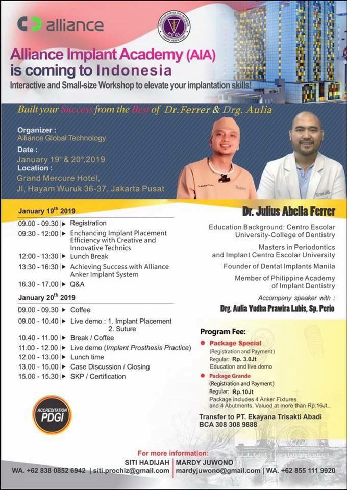 January 19-20, 2019 – First stop in Jakarta was the Global AIA (Alliance Implant Academy) Implant Training Workshop for Dentists. Dr. Ferrer was one of the trainer in the workshop. 15 practicing dentists and future dentists participating were eager not only to learn, but were also committed to use the Anker Implant System in their practice.